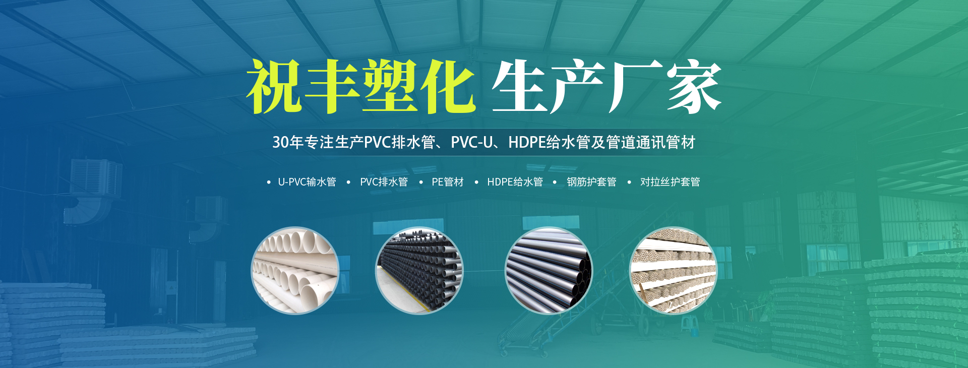 安陽市祝豐塑化有限公司坐落在滑縣工業(yè)園區(qū),東臨大廣高速,西臨京珠高速,是鄭州、鶴壁、安陽、濮陽四個城市的輸紐,交通便利、環(huán)境優(yōu)美。 公司始建于八十年代,經(jīng)過二十余年的艱辛創(chuàng)業(yè),規(guī)模不斷壯大,由十多萬元資產(chǎn)的小廠,發(fā)展到現(xiàn)占地面積達一萬多平,建筑面積一萬平,資產(chǎn)2000多萬元管材生產(chǎn)企業(yè)。公司生產(chǎn)PVC-U、PVC排水管、HDPE給水管、鋼筋護套管管道通訊管材等產(chǎn)品,廣泛用于農田節(jié)水、高山引水、人畜用水、建筑、電力通訊等多種用途,品種齊全。為了滿足用戶需求,可承攬各種給水、節(jié)水、灌溉工程?!白XS塑化”憑借強勁的實力,優(yōu)良的管理水平?!耙再|量求生存,以信譽求發(fā)展”的原則全力以赴和大家共同塑造美好未來。..
